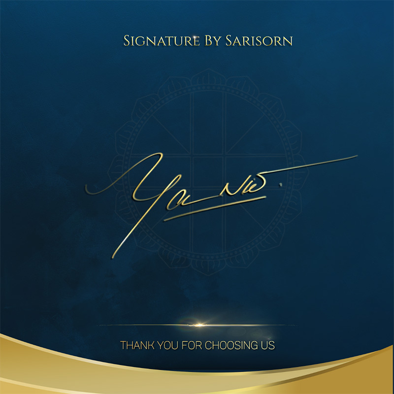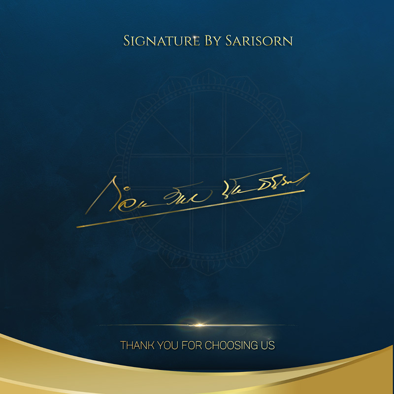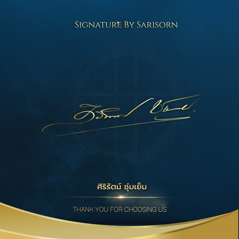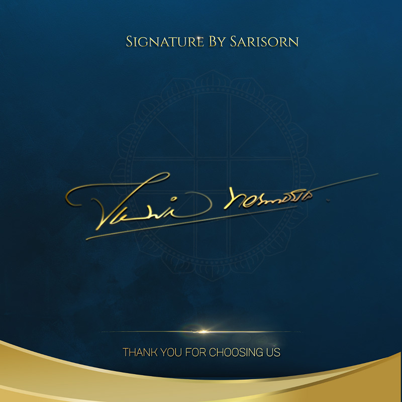 อาจารย์กำหนดวันที่เป็นมงคลตามหลักการให้ฤกษ์จึงทำให้ลายเซ็นที่ออกแบบมีความเป็นมงคลตั้งแต่เริ่มการออกแบบ